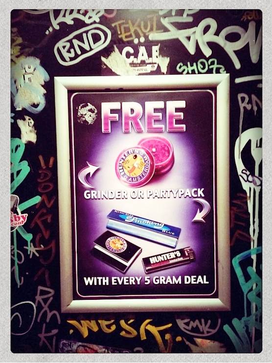 Coffeeshop Hunters in Amsterdam offers 5% discount on every purchase of 5 grams.